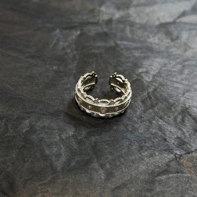 Each piece in the Molten Silver Collection captures the dialogue between metal and light — raw textures, hand-carved details, and gentle gleams that shift with every motion.