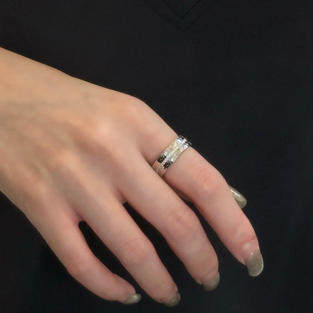 Hand-forged to create irregular reflections, this piece celebrates the raw beauty of silver — imperfect, bold, and quietly refined.